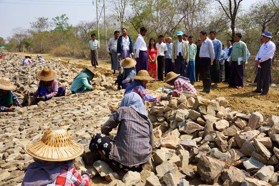 လမ္းခင္းေနမႈကိုၾကည့္ရႈစစ္ေဆးျပီး ေတာင္တြင္းႀကီးၿမိဳ႕နယ္ ပရပ္ၾကယ္ေက်းရြာတြင္ စံျပစက္မႈလယ္ယာ